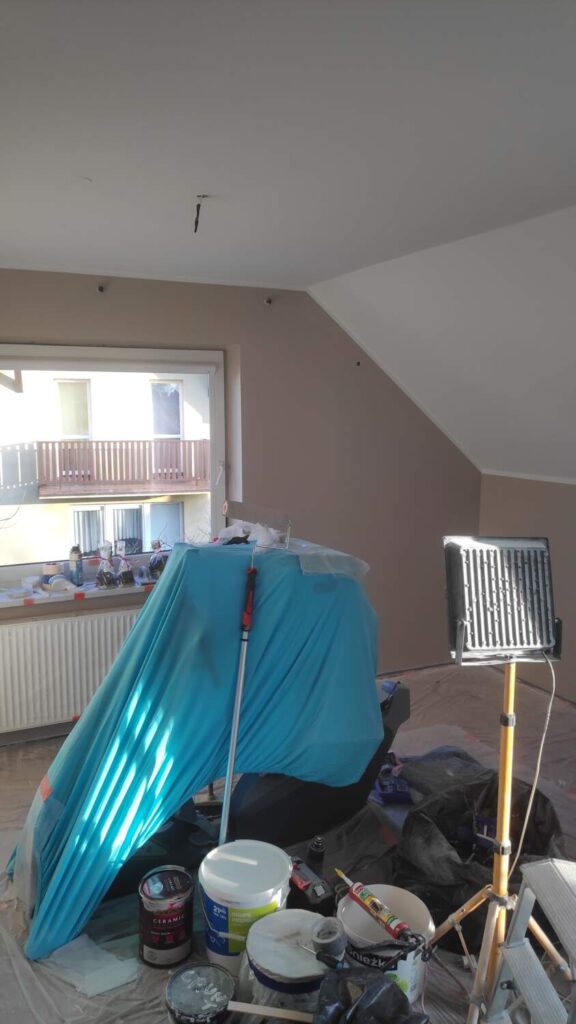 Malowanie ścian i sufitów to jeden z końcowych etapów każdego remontu. Malowanie tradycyjne idealnie sprawdza się w przypadku małych pomieszczeń/zleceń. Wykonuje się je przy pomocy wałka lub pędzla.